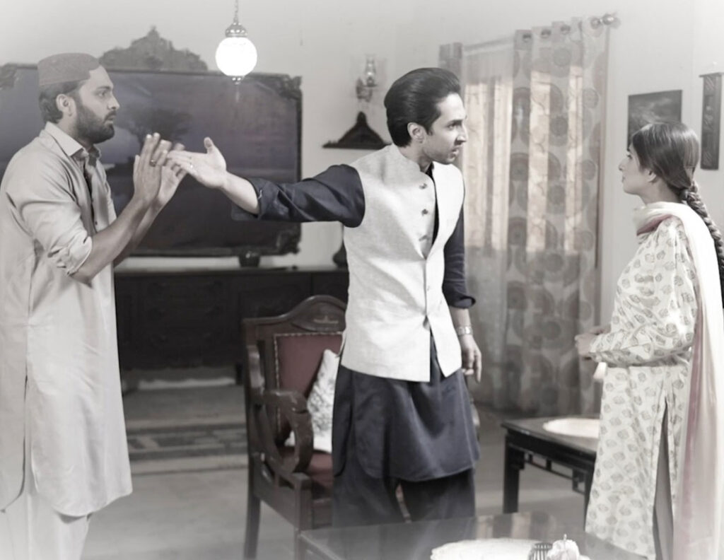 The story continues in the present, but when Mahnoor meets Hashim’s mother, and they are conversing about her family, the mention of her forefather’s village ‘Nawab Shah’ takes the audience to the faded panoramas of countryside life through the lens of his mother. A heartfelt sequence of scenes from the landscapes of a village are showcased in a faded manner offering a phenomenal cinematography.