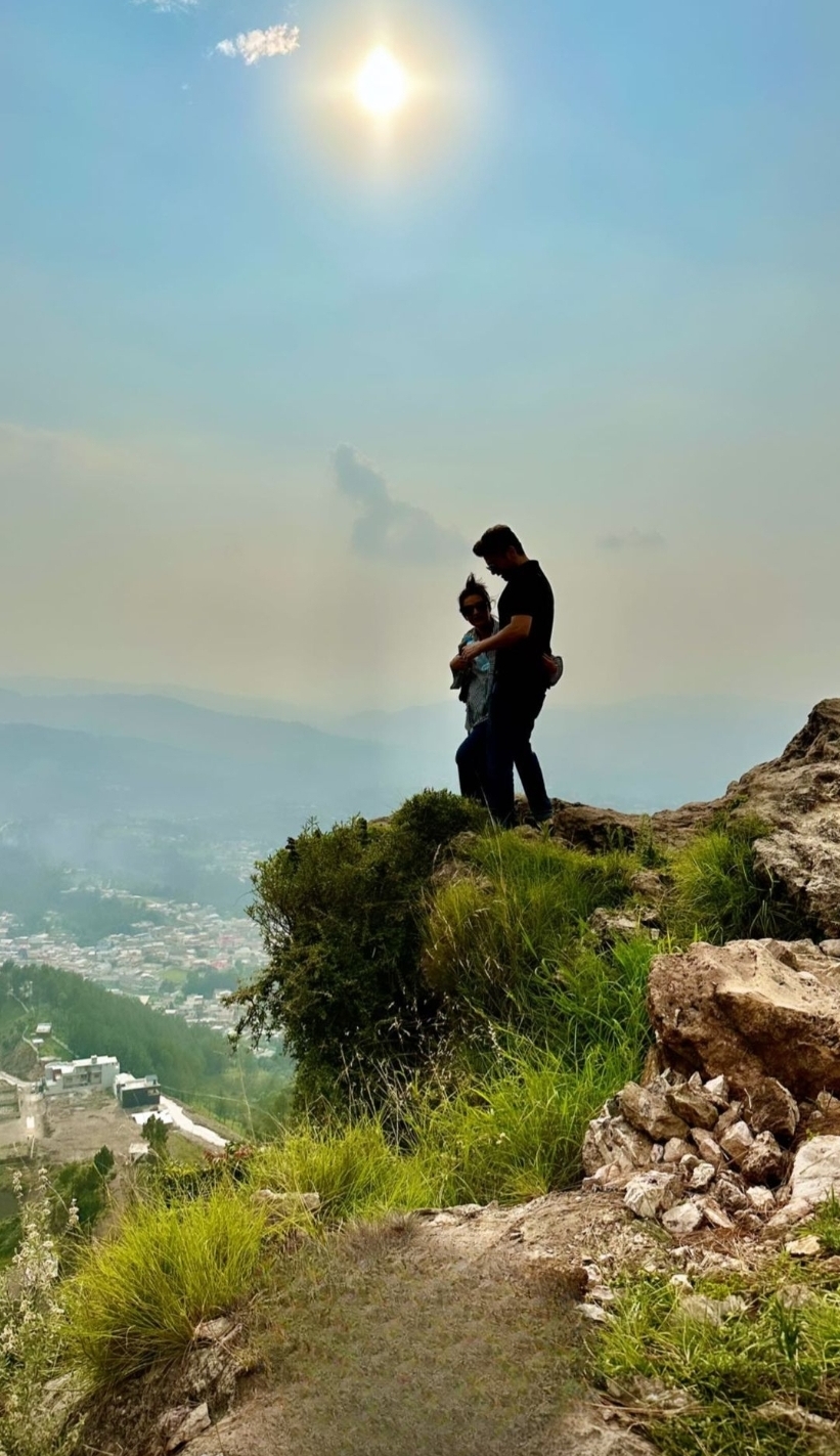 In the midst of their remarkable expedition, they encountered a moment of pure exhilaration. Scaling the heights of a majestic cliff, Fawad Khan guided Sadaf Fawad to a breathtaking vantage point. It was there that they seized the opportunity to capture a truly remarkable and unforgettable photograph, etching the beauty of their surroundings and their profound connection into a cherished memory