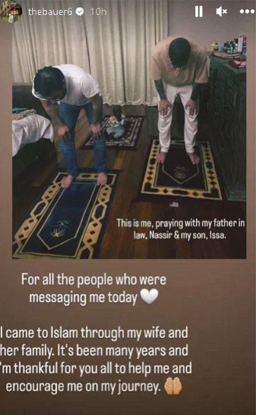Accompanied by a poignant picture, Bauer could be seen praying alongside his young son and his father-in-law, underscoring the importance of family and tradition in his spiritual quest. Bauer’s public declaration has sparked conversations about the intersection of sports and religion, as well as the power of personal connections in shaping an individual’s beliefs.