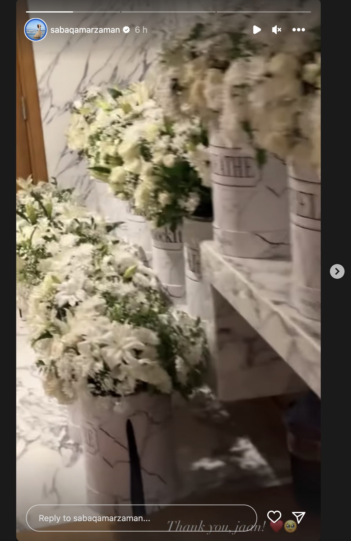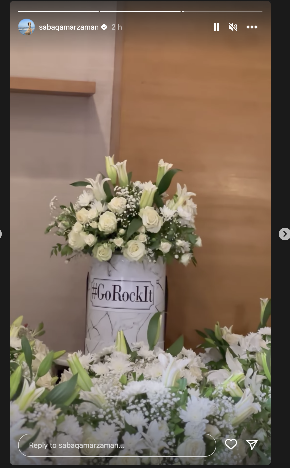 As the night approaches for HUM 22nd Lux Style Awards, the talented actress Saba Qamar finds herself at the center of attention, not just for her anticipated performance but also for the mysterious sender of a bouquet avalanche. It seems that Saba has an anonymous admirer who is determined to make her feel special on this big night. Bouquet after bouquet of vibrant flowers has arrived at her doorstep, each vase bearing the encouraging message “Go rock it” in bold font.